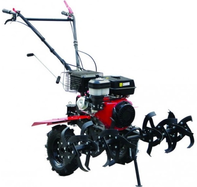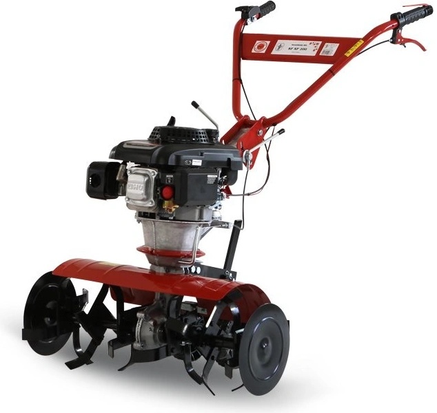 Benzínový kultivátor so spätným chodom sa pýši robustnou konštrukciou vhodnou aj do ťažších podmienok a dvomi pomocnými zadnými kolesami pre lepšiu stabilitu.